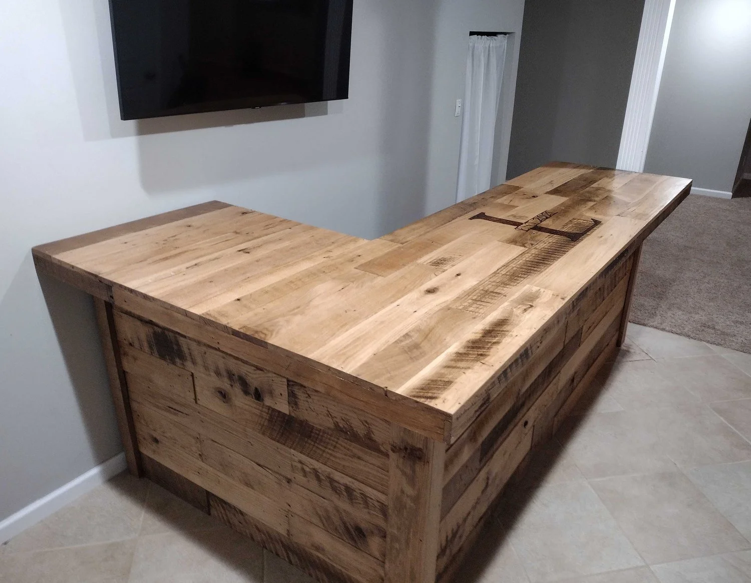 Elevate your home with our exquisite indoor oak bar, designed for both functionality and elegance. Each bar features a stunning wood burned monogram or customization, making it a personalized centerpiece for your entertainment space. Crafted from premium oak, this bar showcases the natural beauty of the wood while offering ample storage for your favorite beverages and glassware. Whether hosting a gathering or enjoying a quiet evening, its timeless design and customizable options ensure it complements any decor. Transform your indoor entertaining experience with this unique and sophisticated addition to your home.